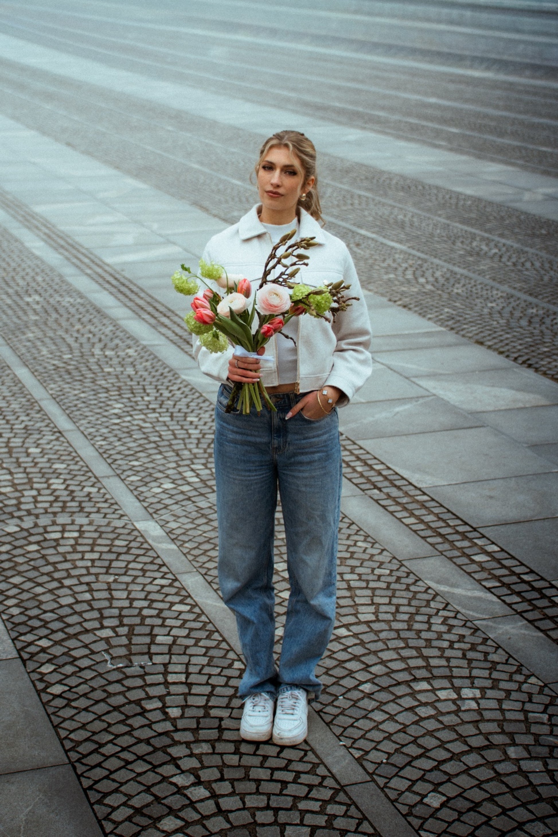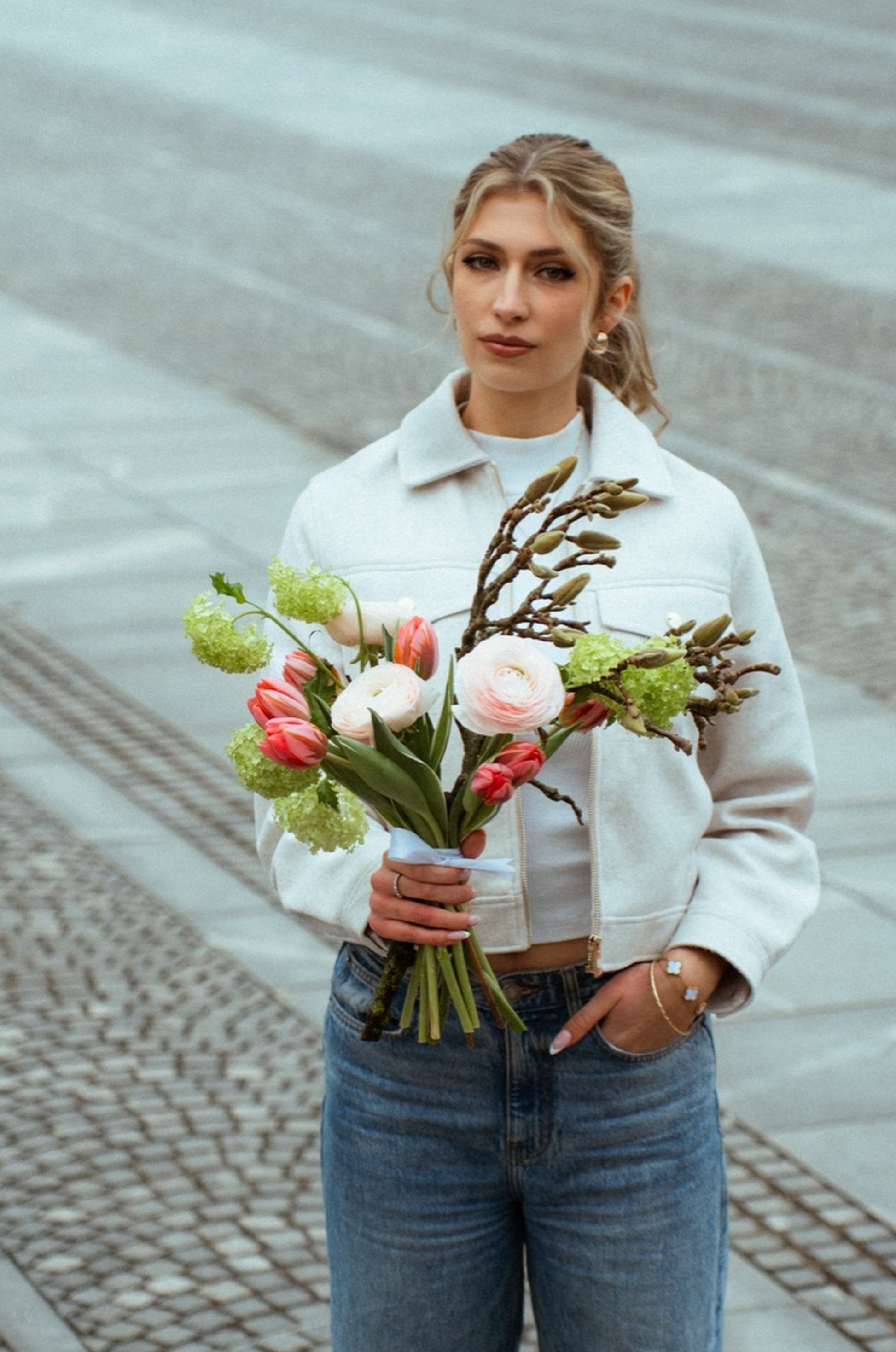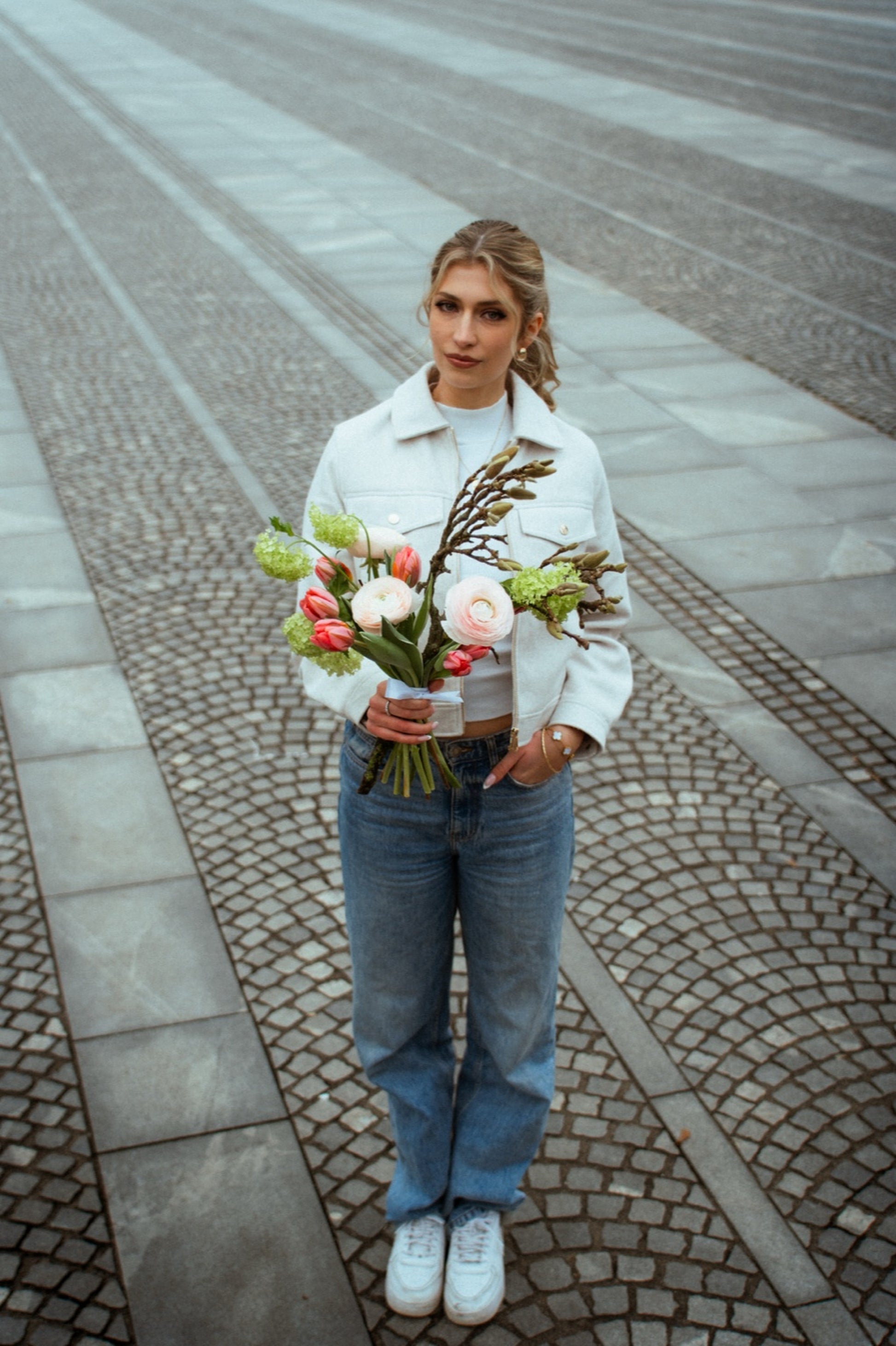 Količina rož in posledično velikost šopka, se razlikujejo glede na ceno šopka. Šopek na sliki je pripravljen v vrednosti 65 EUR.